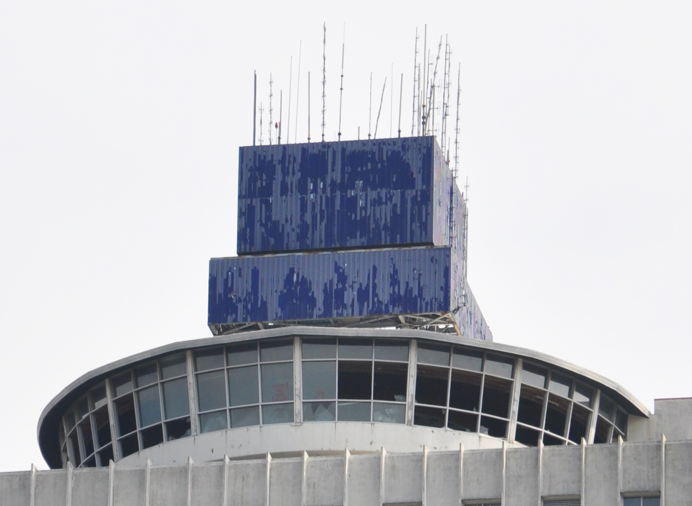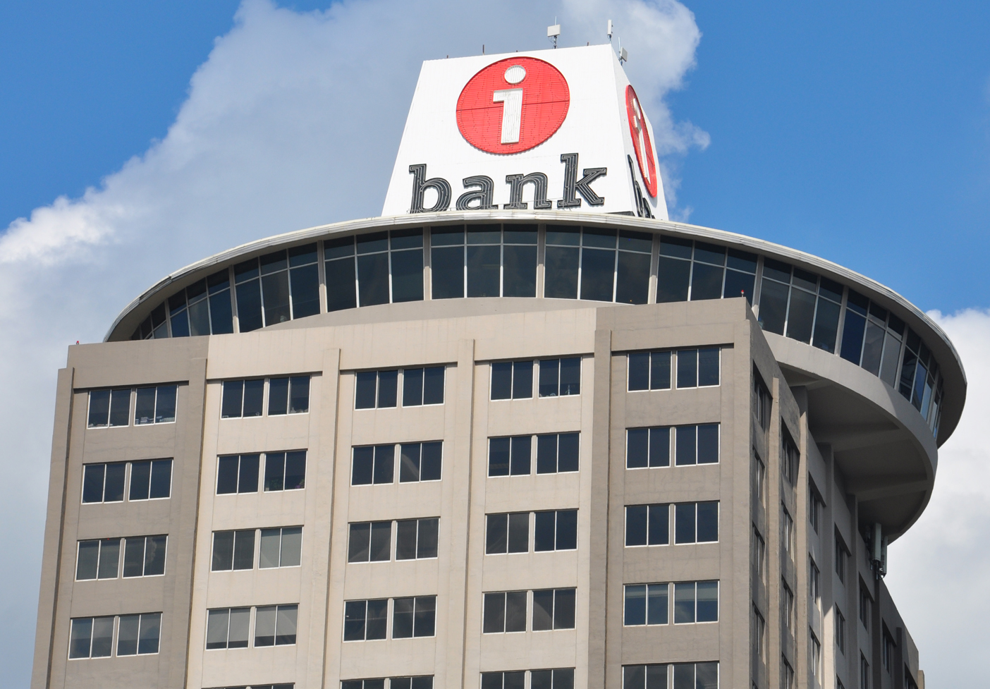 The first i-Bank sign shown above is installed on top of the White Station Tower office building which was built in 1965. The original sign advertised for the UP (Union Planters) Bank. The i-Bank (Independent Bank) sign was installed in 2006. The round structure just below the sign was originally a revolving restaurant. It is now just stationary office space. [map]