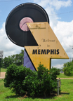 This Welcome Sign is on Route 51 coming into Memphis from Mississippi. I believe the record-shaped, modern sign was built by a movie company. Memphis claims to be the "Home of the Blues" and the "Birthplace of Rock-and-Roll". [map]