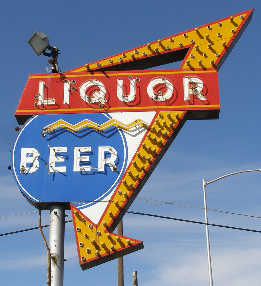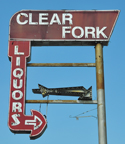 I believe the top panel of the Clear Fork Liquors sign has been adapted for a few different businesses. It probably advertised for Tabor's Liquors in the 1950s. By the 1990s, the store was known as Hunsuckers Liquors. The bulb arrow was probably added in the 1960s. [map]