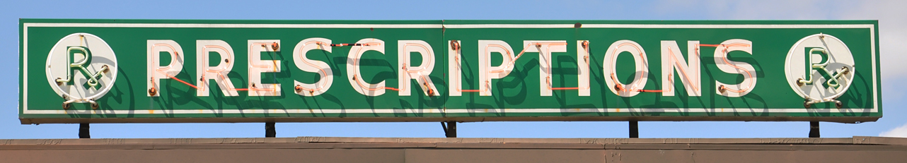 | The Perrone Pharmacy opened in 1952. These signs appear to be from then. [map] |