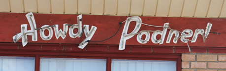 | The El Dorado Motel was built in 1955. There was originally another neon text panel on the poles beneath this one. It was blue and read "Refrigeration, Electric Heat, Television, Vacancy." The "Howdy Podner!" sign was installed over the office window. It was gone by 2021. The motel has been closed for many years. [map] |