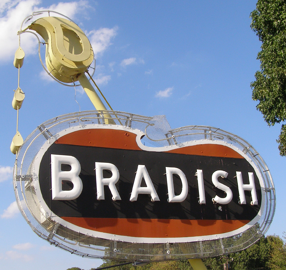 Bradish Signs opened in 1956. The sign features a giant paint brush with dripping paint and a palette shaped text panel. The business is closed now and the sign is for sale. [map] |