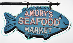 The Amory's Seafood sign was installed on the roof at another location in town in the 1950s. It was moved to its current location, which is primarily a wholesale business, in the late 1960s or early 1970s. The sign is installed on a pole just a few feet from the Hampton River. The smiling, generic fish is about eight feet long. The sign was restored around 1980 and it is repaired when the tubing fails. [map] |