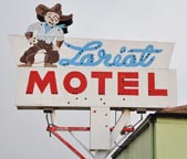 The Lariat Motel sign had neon originally. It was probably built in the 1950s. By 2021, the word "MOTEL" had been painted over and the building was boarded up. In 2022, it was announced that the building would be adapted for apartments. The owner plans to relight the sign. [map] |