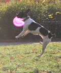 In 2008, I discovered that Nik was completely blind in his right eye. The vet believed it was probably a genetic defect. The retina in that eye was completely detached. He may have even been blind in that eye when I adopted him. Despite the handicap, he caught balls with great precision and was able to leap and go around objects efficiently at top speed. Nik evidently developed his own system for depth perception.