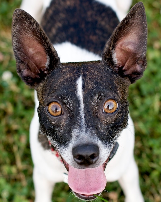 Sputnik was a Rat Terrier, although his dark brindle markings would have disqualified him from registration with either the AKC or UKC. He was about 17 years old when he passed away in 2020. He weighed 18 pounds and stood 15 inches at the withers. I found him listed on Petfinder.com and adopted him when he was about one year old. Sputnik came from a shelter in New Jersey where nothing was known about his background. At the shelter, he briefly went by the name of "Jax". My name for him comes from our mutual love of balls: mine being 1960s signs such as these and these. Sputnik's ears looked very much like the spiky projections of these signs. The actual Russian translation of his name is "fellow traveler" which was also very appropriate.