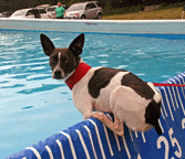 | Nik competed in dock diving for a few years. He set some records for small dogs, jumping about 15-20 feet on average. His form was terrible since he was never properly trained for the sport but his speed and enthusiasm carried him far out from the dock and made him a real crowd-pleaser. He still holds the record for Rat Terriers which he set with Splash Dogs in 2007. |