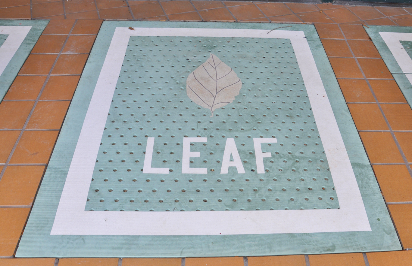 | The Leaf Theatre was built in 1949. It was named after the cigar wrapper tobacco that was grown here. The color scheme of pastel green and tobacco brown is a tribute to the leaf. The theatre closed in 1980 and, in 1983, was converted into a performing arts center. For more, see this website. [map] |