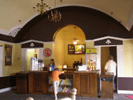 | The Wink Theatre was built in 1941 by J.C.W. Wink. It was built to be "a small town version of the Fox Theatre in Atlanta." It escaped demolition in 1998 and reopened in 2002. Since 2007, the building has housed the Rock Bridge Community Church. For more, see this website. [map] |