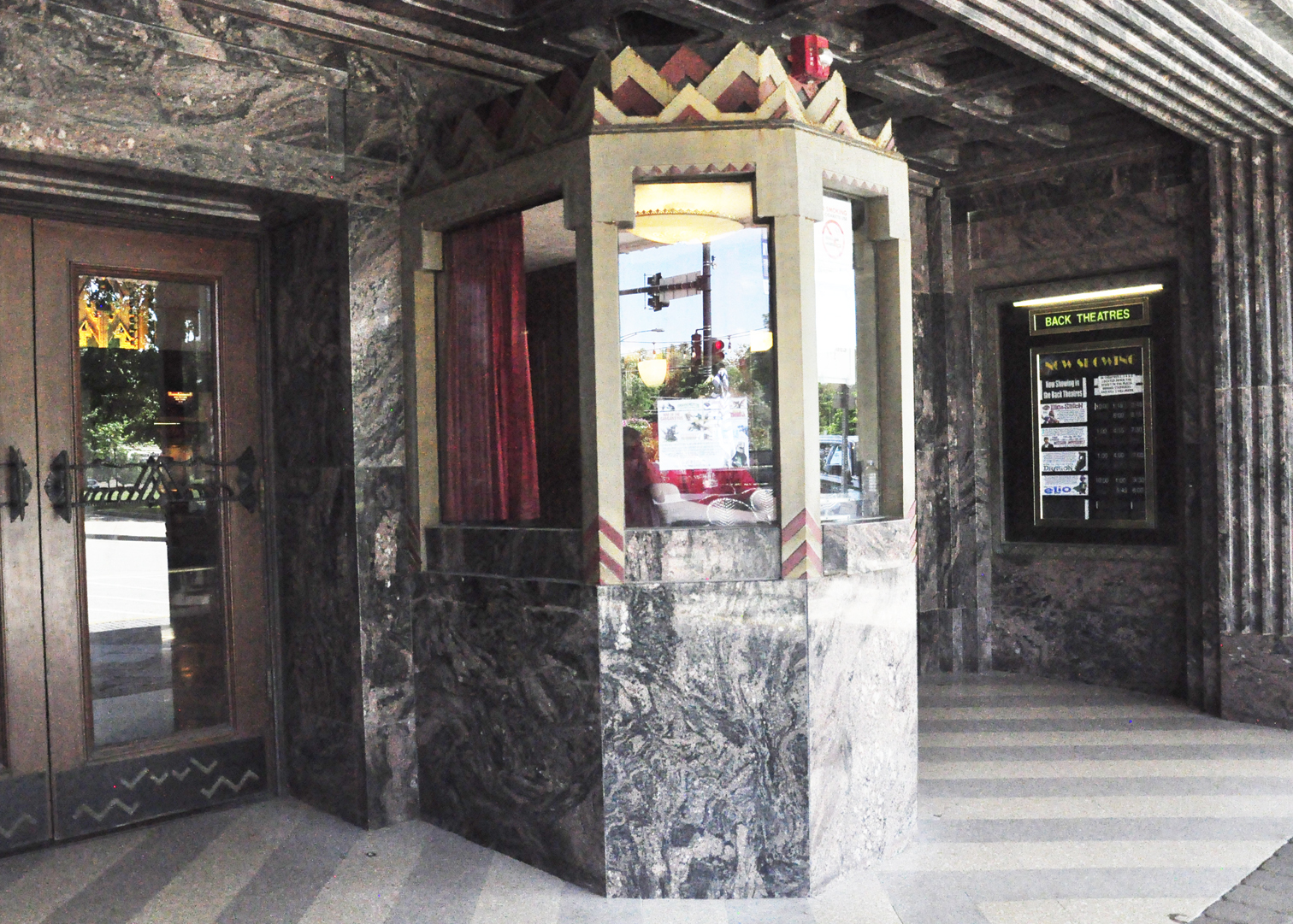 The Zoe Theatre opened in 1950 and has been closed since 1986. Many of the vitrolite tiles on the facade are missing at this point. For more, see this website. [map] |