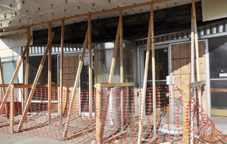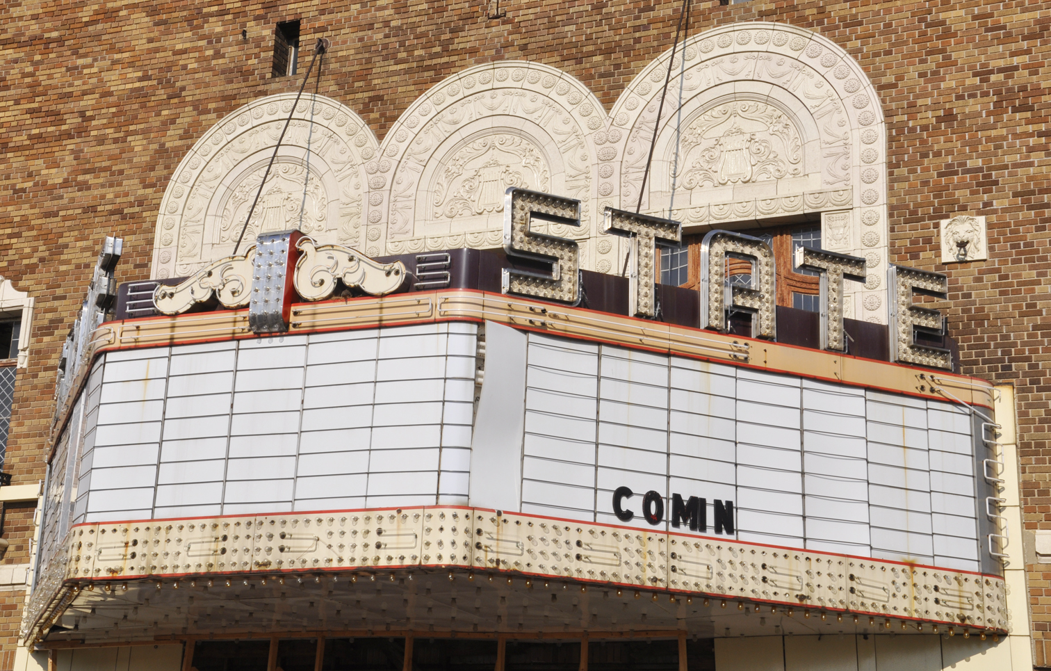 | The State Theatre was built in 1930 and closed in 2008. There were plans to restore the theatre but it remains abandoned and there is worry that the building is too far gone to save. The marquee is being supported with a wooden, temporary structure. For more, see this website. [map] |