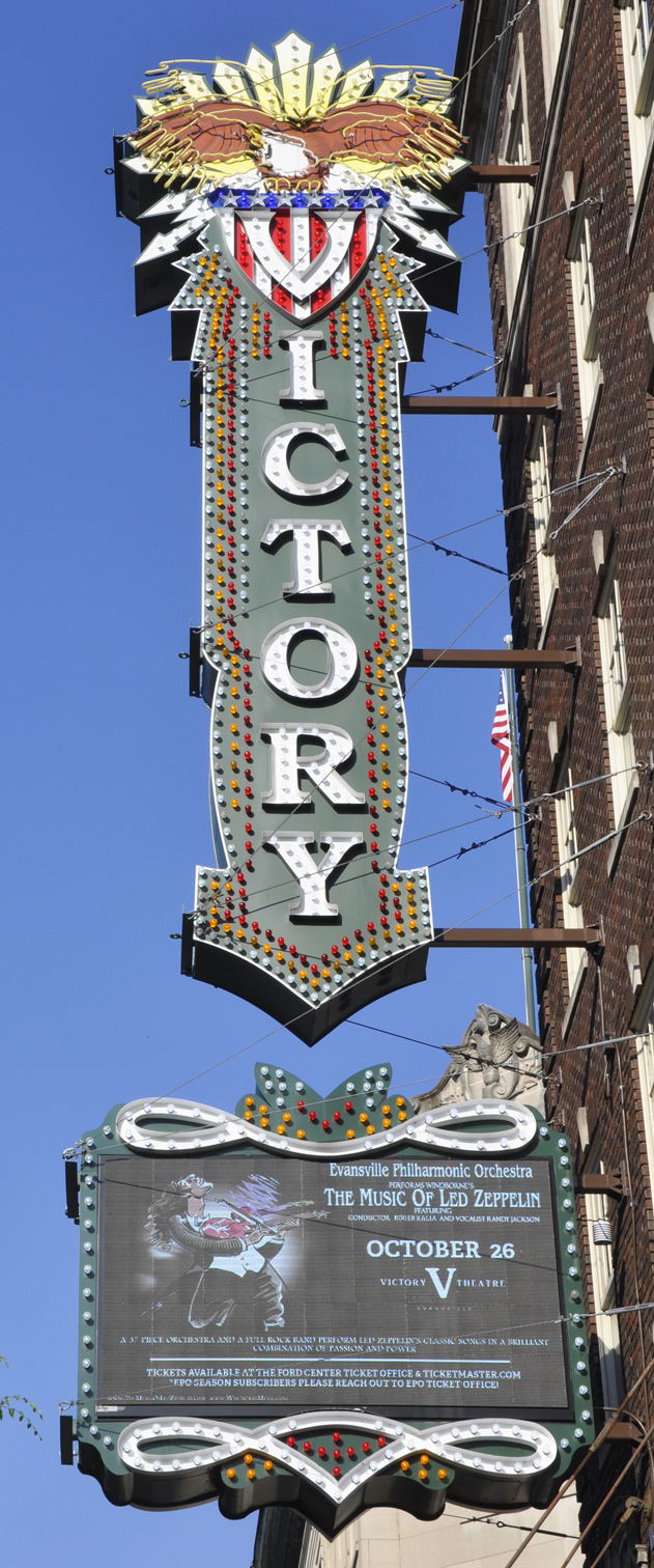 | The Victory Theatre opened in 1921. In 1926, it became the Loew's Victory Theatre. It closed in 1971 and then opened and closed several times. After renovations, it reopened in 1999 as a performing arts center. This blade sign was installed in 2023. It was modeled after the much larger original sign. For more, see this website. [map] |