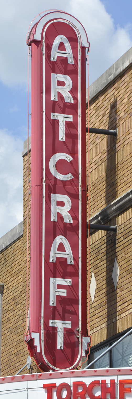 | The Artcraft Theatre opened in 1922 with vaudeville and silent movies. It was remodeled in 1936 and again in 1948 to its current look. The blade sign and marquee were restored in 2017. For more, see this website. [map] |