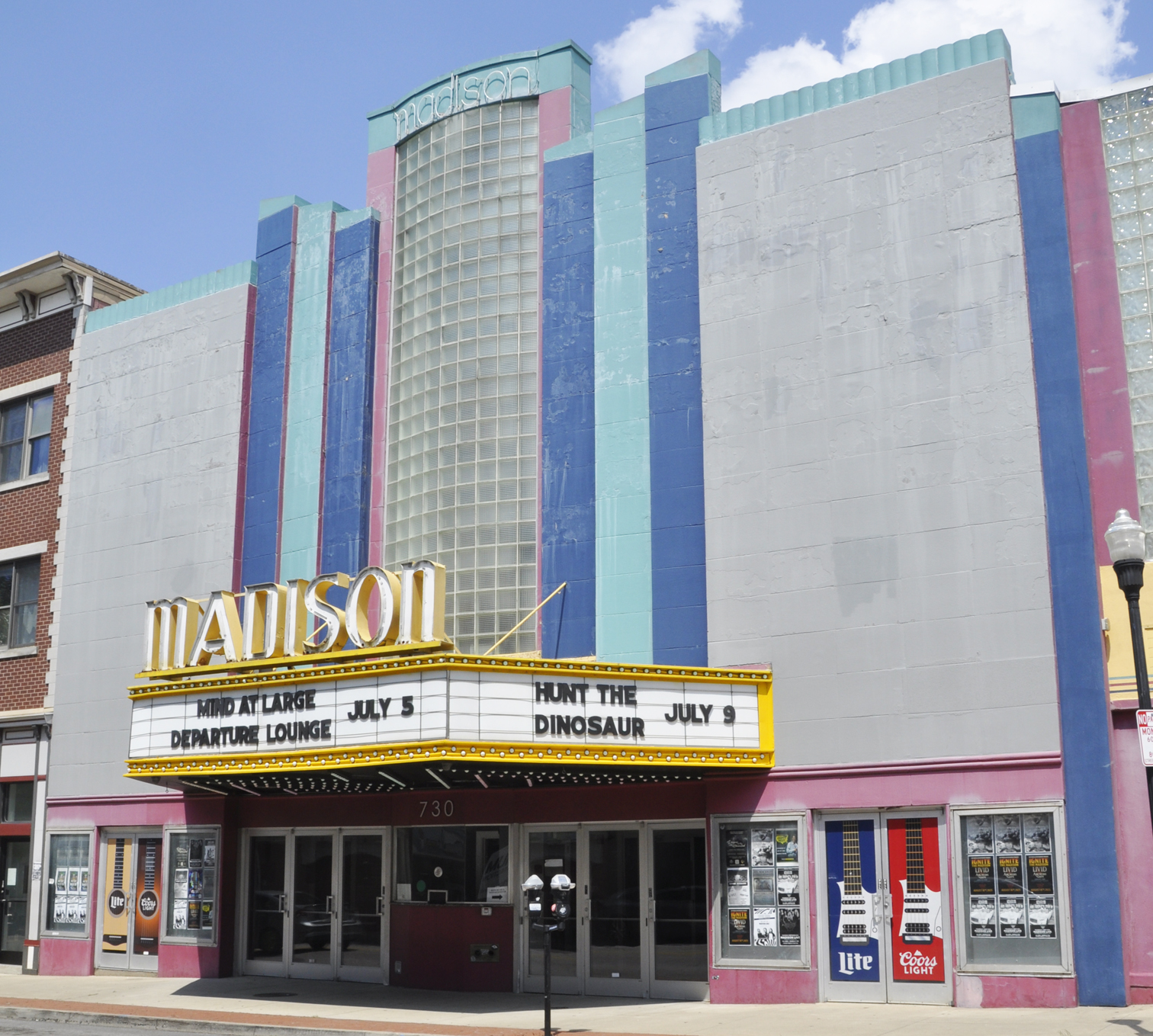| The Madison Theatre opened in 1912 as the Lyric Theatre. It was remodeled and renamed the L.B. Wilson Theatre in 1928. In 1942, it became the Madison Theatre. After a fire in 1944, it was rebuilt with the facade's current look. The theatre is now used as a live music venue. For more, see this website. [map] |
