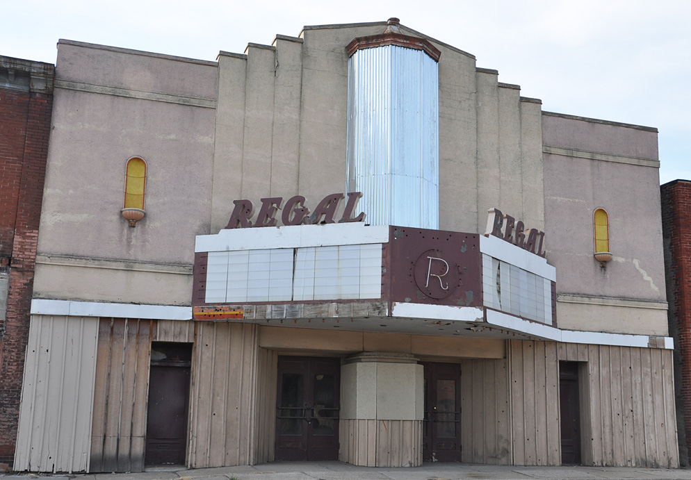 | The Regal Theatre was designed by the Boller Brothers. They used the same design for a few years later for State Theatre in Lincoln, NE. The Regal opened in 1926 and was remodeled in 1941. It closed in 1961 and I believe it has been vacant since then. For more, see this website. [map] |