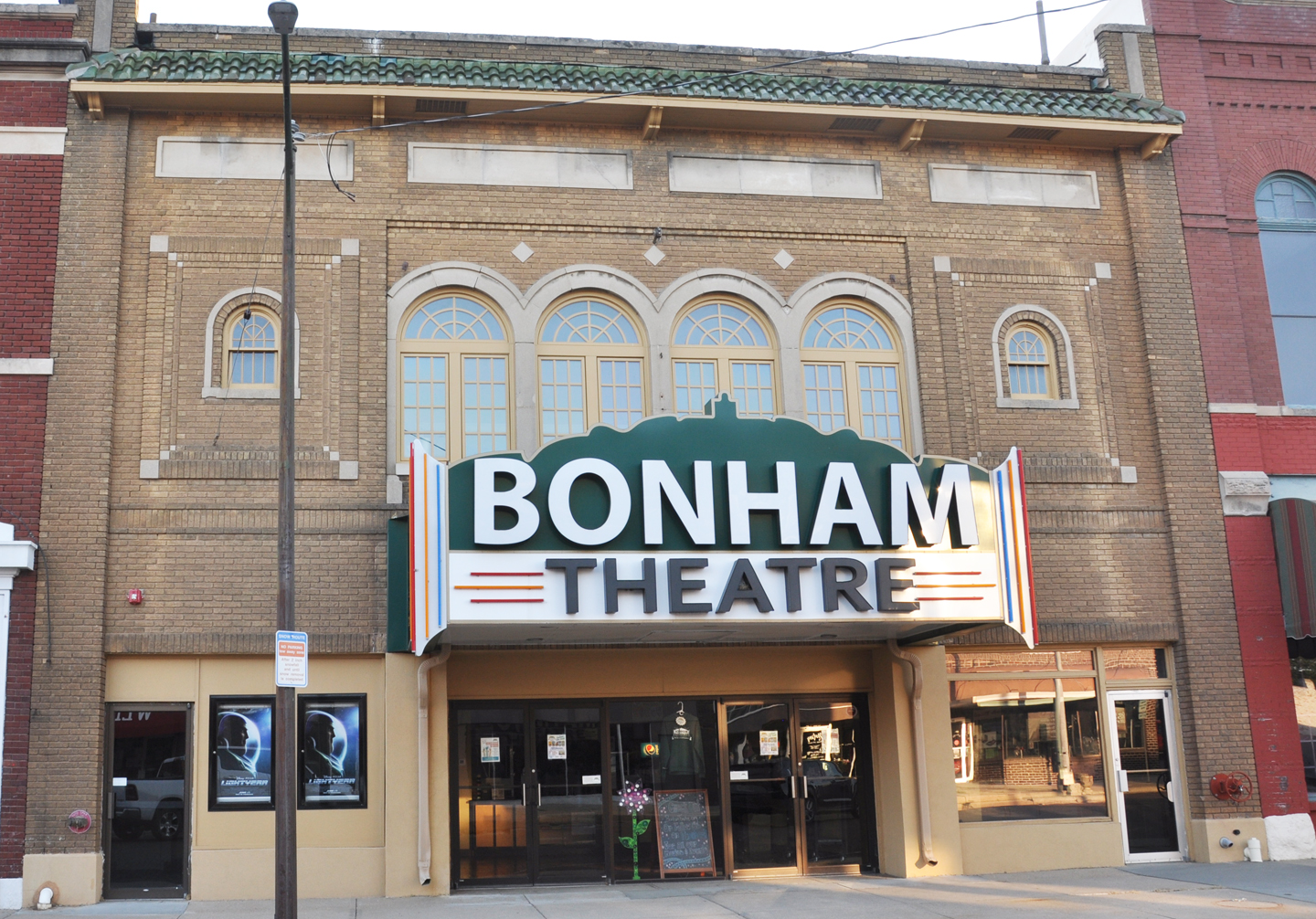 The Bonham Theatre opened in 1926 and closed in 2012. The theatre was renovated in 2016 and reopened in 2017. A new marquee with plastic letters, LED rope, and graphic display boards on the sides was installed at that time. For more, see these websites: 1 and 2. [map] |