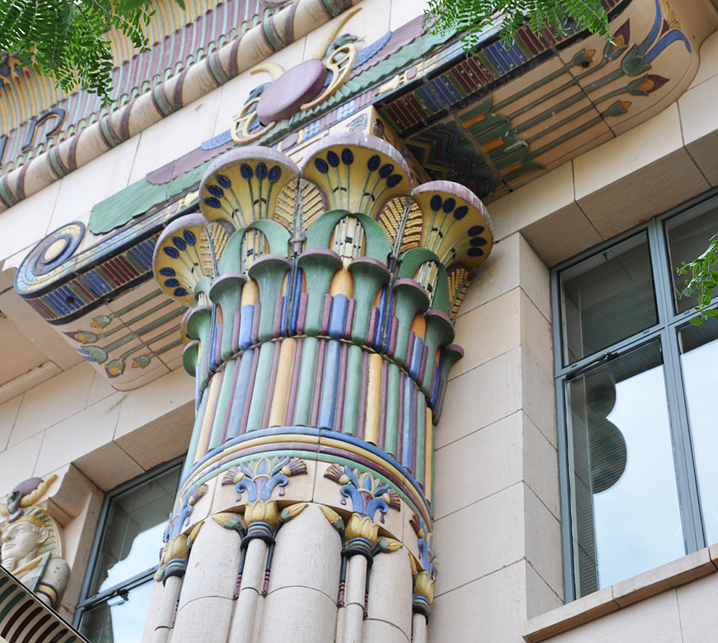 | The Peery's Egyptian Theatre opened in 1924. The atmospheric Egyptian design was inspired by Grauman's Egyptian Theatre in Hollywood, CA which was built in 1922. The Arlington Hotel, previously at this site, burned down in 1923. To be safe, this theatre was built of poured and reinforced concrete. The theatre closed in 1984. It was restored and reopened in 1997 as a performing arts center and movie theatre. The building is listed on the National Register of Historic Places. These photos are from 2014. Around 2019, the sign on the front of the canopy was changed to an electronic display. Around 2021, a vertical blade sign was added above the canopy. Peery's is used as a satellite location for the annual Sundance Film Festival which is based in Park City, UT. For more, see these websites: 1 and 2. [map] |