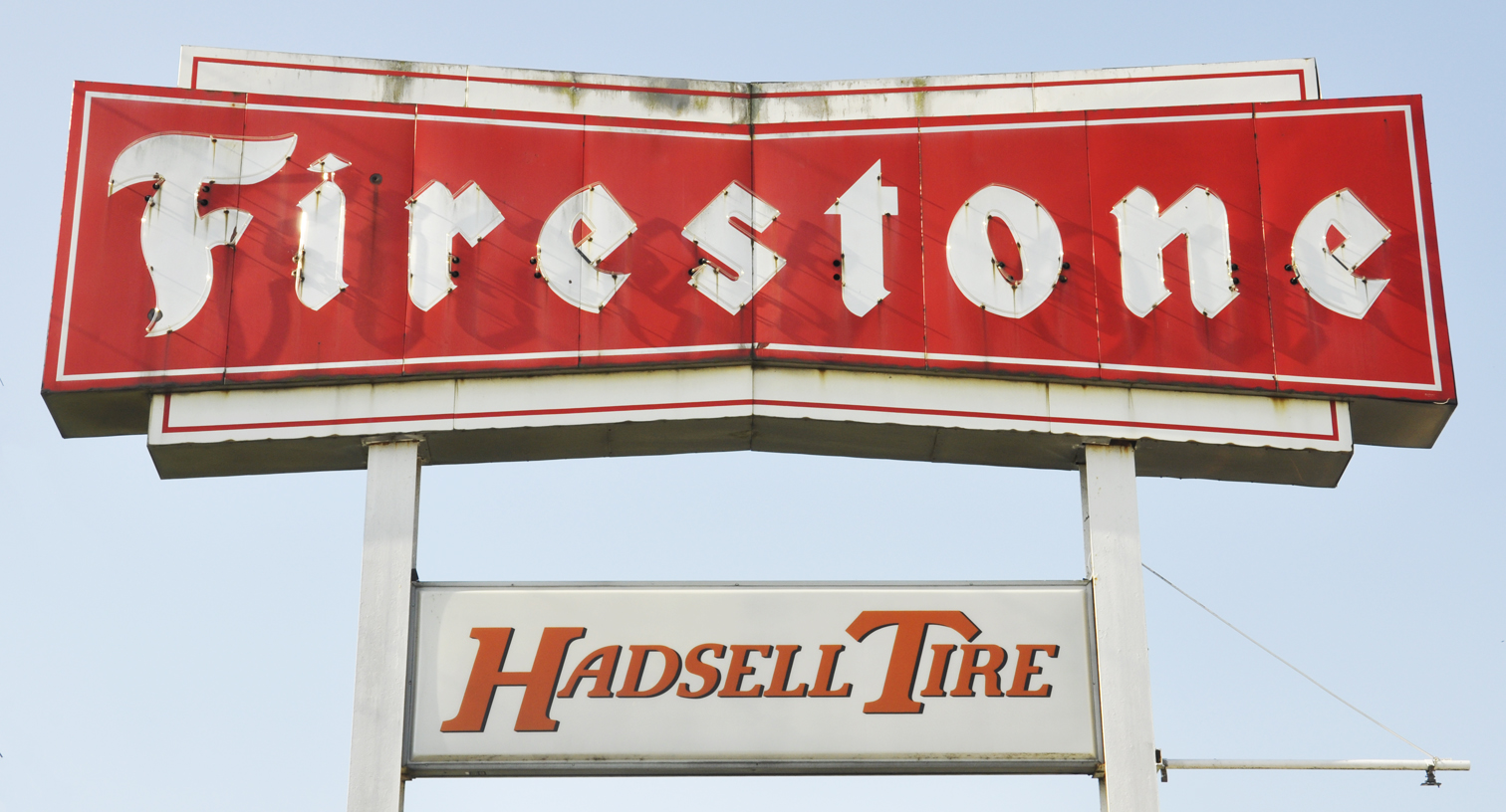 This Firestone sign in Anderson is located at Hadsell Tire which was established in 1972. [map]