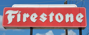 | This Firestone store was probably built in the 1950s or 1960s. By 2013, the sign on the roof was removed. The neon letters on the sides of the building and the two neon pole signs are still there. [map] |